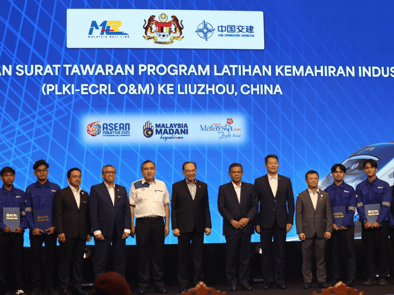 安瓦尔在讲话中强调,确保马来西亚东海岸铁路项目的成功和持续性至关重要。他指出,作为马中共建“一带一路”旗舰项目,东海岸铁路不仅是一个现代、先进和快捷的运输系统,还将成为沿线发展新增长领域的催化剂,必将成为共建高水平战略性中马命运共同体的合作典范。他表示,通过“中马铁路人才培训计划”(PLKI-ECRL),马来西亚青年人才能够学习到铁路行业理论和实践方面的知识,在完成培训并考核通过后优先获得就业机会,有助于为青年人才开辟更广泛、更稳定的职业道路。他勉励入选该计划的有志青年们珍惜机会、刻苦学习,早日学成归来,为大马铁路行业发展贡献力量。