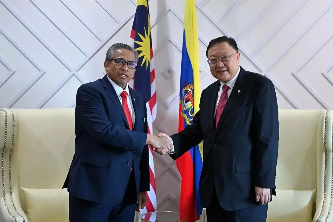 5月28日,中交集团董事长王彤宙在马来西亚布城拜会马来西亚政府首席秘书、马来西亚铁路衔接公司董事会主席丹斯里三苏·阿兹里,双方就马东铁项目实施情况、运维工作和深化合作开展座谈交流,并共同见证中交马东铁项目补充协议7框架条款签约。