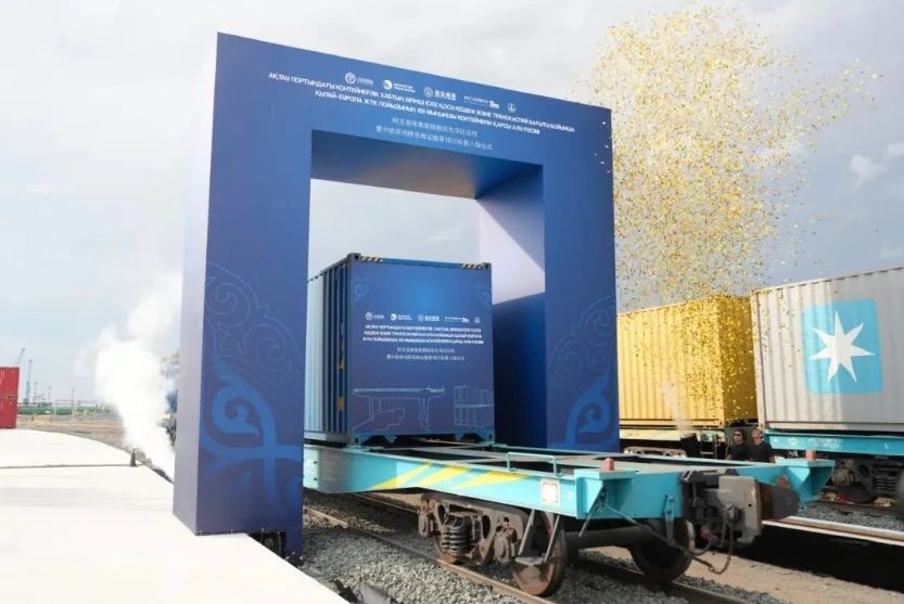 活动现场,象征里程碑意义的“中欧班列跨里海运输第10万标箱”列车鸣笛驶入新枢纽区,标志着中哈高质量共建“一带一路”取得又一重大成果。