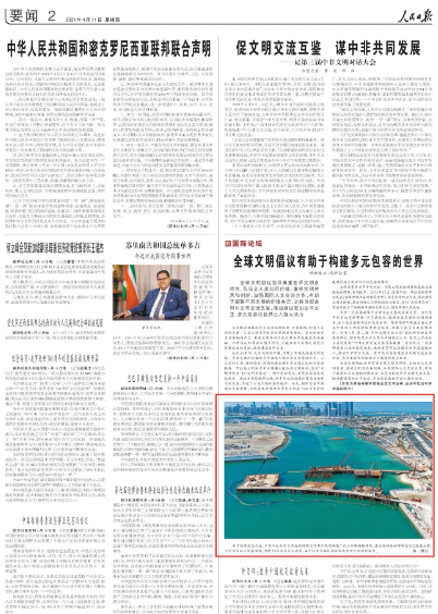 4月11日,《人民日报》刊登图片报道,聚焦由中国港湾承建的阿联酋阿布扎比瑞姆岛7号、8号跨海桥项目。