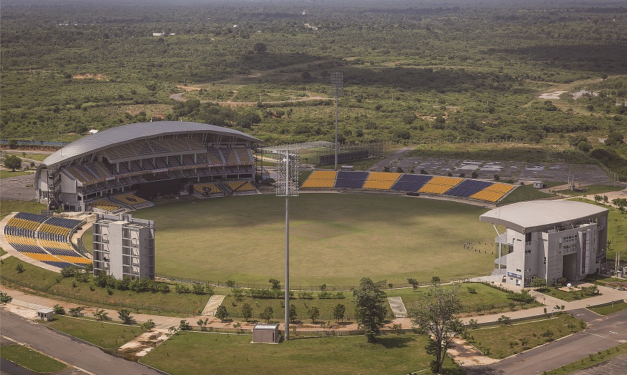斯里兰卡汉班托塔国际板球场,2011年板球世界杯在此举行两场赛事。可容纳34,300人。板球场建筑面积22000平方米,包括主看台(5层)、媒体中心(5层)、东西看台、主通道、公共通道、停车场、训练场。